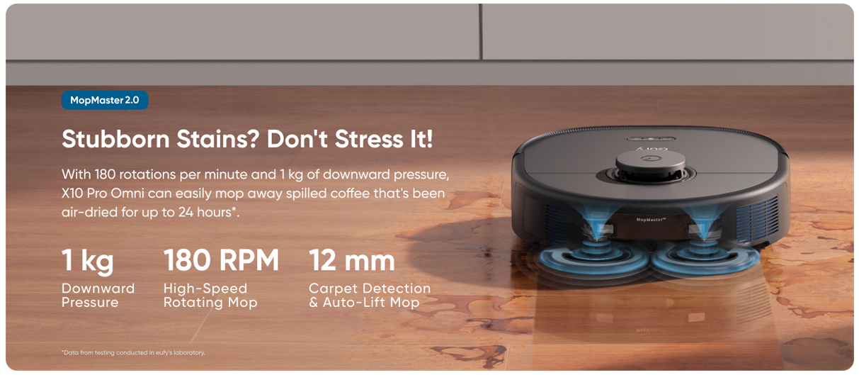 سیستم MopMaster 2.0 با چرخش سریع پدها و فشار کنترلشده، لکهها را بهتر از بسیاری از دستگاههای مشابه پاک میکند.