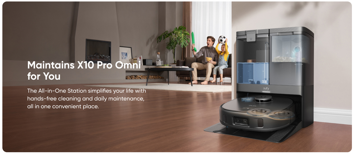 ایستگاه Omni: توانایی تخلیه خودکار گرد و غبار، شستوشو و خشککردن پدها، شارژ مجدد و مدیریت آب پاک و کثیف
