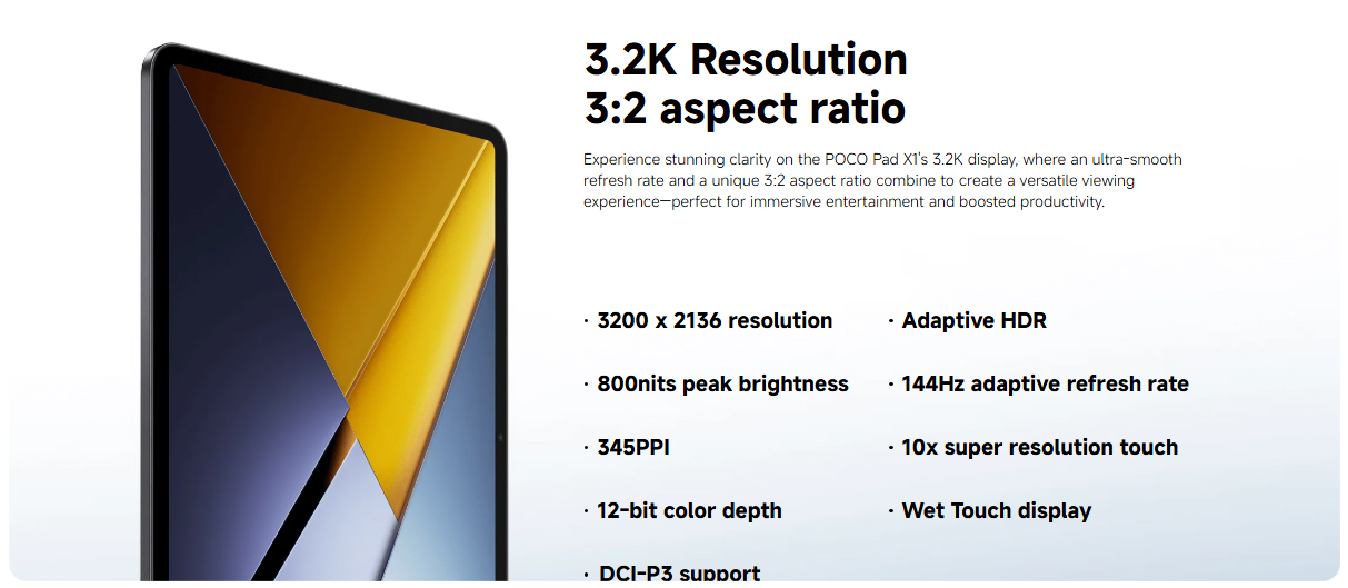 | ویژگی | مشخصات فنی Poco Pad X1 |
