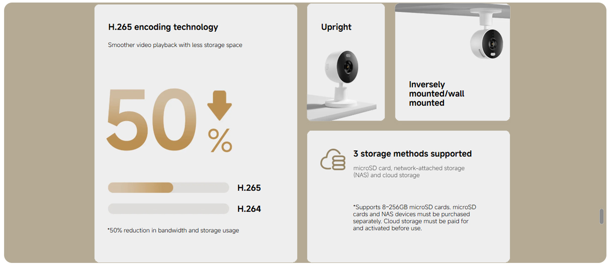 ذخیرهسازی: کارت micro SD تا 256 گیگابایت، همچنین پشتیبانی از NAS یا فضای ابری